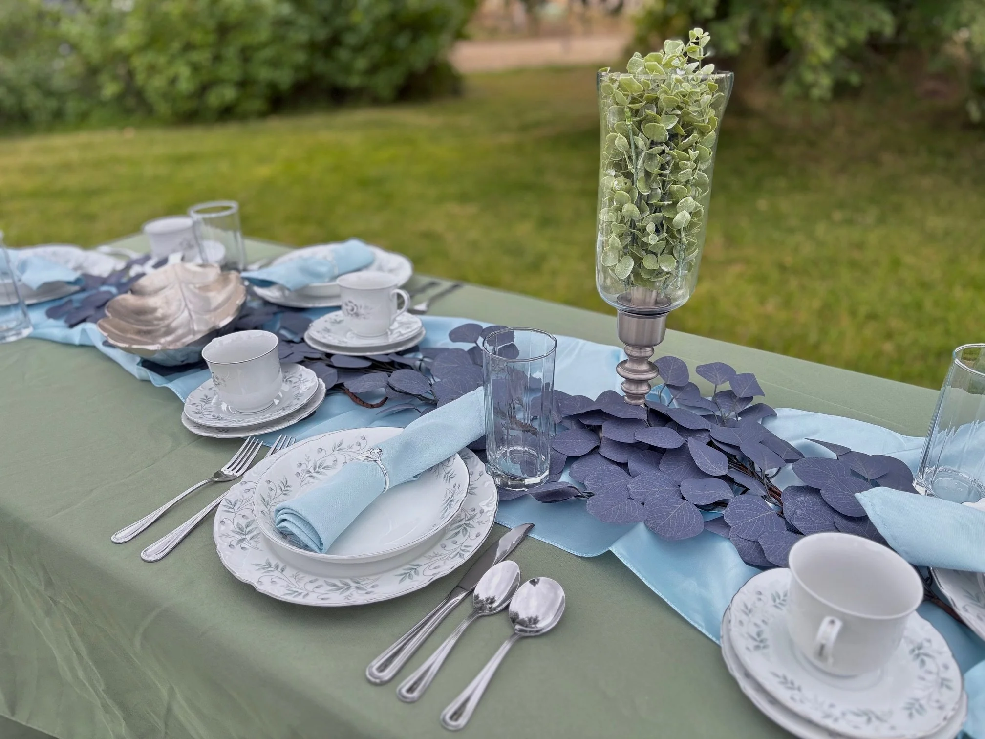 Enhance your evening using the exquisite Dusk Dinner and Decor Kit, crafted to turn any setting into a sophisticated and elegant retreat immersed in deep, luxurious blues. This thoughtfully assembled collection includes sumptuous linens, polished cutlery, radiant crystal glassware, and a captivating floral centerpiece highlighted by delicate silvery blue leaves. Each element evokes the calm and mystique of a peaceful, moonlit night. Perfect for intimate dinners or refined soirées, it cultivates a timeless, enchanting ambiance gently enveloped in the opulent tones of twilight.