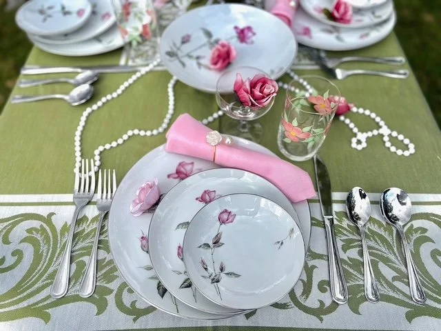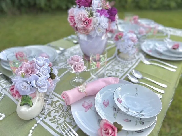 Enhance your dining with our French Rose-inspired collection—elegant dinnerware and décor blending sophistication and romantic charm. Fine China plates feature rose motifs in blush and ivory, with subtle gold trim. Crystal-clear glassware and curved silver flatware complete the refined look. Coordinating linen napkins and vintage-style vase centerpieces create an intimate Parisian atmosphere. Perfect for intimate dinners or elegant celebrations, this collection brings timeless French floral beauty to your table.
